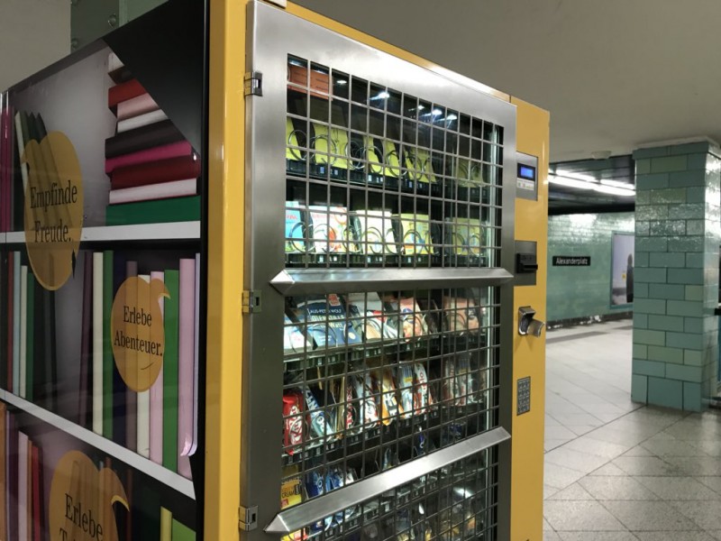 Illustration : distributeur de livres à la station Alexanderplatz dans le métro de Berlin